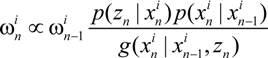 , i = 1,…, Ns} is a set of supporting particles at time n with the associated weights {