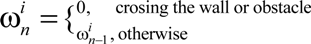 is a random variable with Gaussian distribution.A rule for pedestrian walking is that a pedestrian cannot walk through walls or obstacles. Particles with this motion are seen as invalid, so the weight is updated according to the following equation: