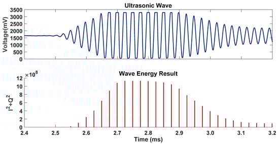 In conclusion, the simulation model demonstrates that the proposed wave detector is very effective. The output result is proportional to the squared amplitude of the sine wave and is independent of the initial phase, so it is easy to detect the presence of ultrasonic waves at a very small amplitude without being affected by random noises. Moreover, this method does not require too many calculations and provides results at each wave cycle. In comparison, the correlation algorithm applied in previous studies [,] have to re-calculate the correlation coefficient of the wave sample sequence. Along with the high-performance operation of micro-controller unit (MCU), this detector is easily embedded into the receiver board.