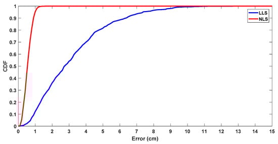 In brief, NLS certainly achieves a higher accuracy than LLS. The cost function of NLS describes exactly the error which the user needs to optimize. At the same time, LLS’s cost function is figured out after linearization as: