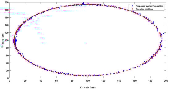 Moving target positioning result (Center I(100, 100) and Radius R = 93 cm).