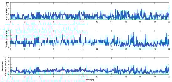 Positioning error result along the X-axis, Y-axis and Euclidean distance.
