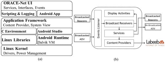 (a) ORACE-Net system-oriented stack over Linux and Android. (b) ORACE-Net Android application architecture.