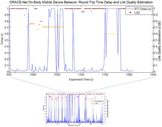ORACE-Net on-body mobile device behavior: round trip time delay and link quality estimation.
