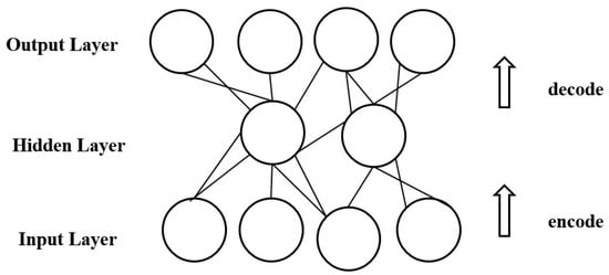 An autoencoder is a neural network that is trained to copy its input to its output [,]. In most cases, an autoencoder is implemented as a three-layer neural network (see Figure 3) by directly connecting output units back to input units. In the figure, every output i is linked back to input i. The hidden layer h in the autoencoder represents the input by a code. Thus, a minimalist description of the network can be made by two main components as follows: (1) an encoder function ; (2) a decoder function that is used to reconstruct the input, . Previously, autoencoders were used for dimensionality reduction or feature learning, but currently, the main purpose of autoencoder use is generative modelling because of the connection between autoencoders and latent variables.