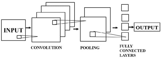 Convolutional neural networks (CNNs) replace matrix multiplication with convolutions in at least one of their layers [,,]. CNNs have multiple layers of fields with small sets of neurons where an input image is partially processed []. When the outputs of these sets of neurons are tiled, their input regions overlap, leading to a new representation of the original image with higher resolution. This sequence is repeated in each sublayer. It is also worth mentioning that the dimensions of a CNN are mostly dependent on the size of the data.