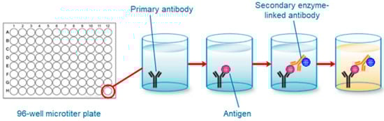 - Engvall, E. The ELISA, enzyme-linked immunosorbent assay. Clin. Chem. 2010, 56, 319–320. [Google Scholar] [CrossRef] [PubMed]