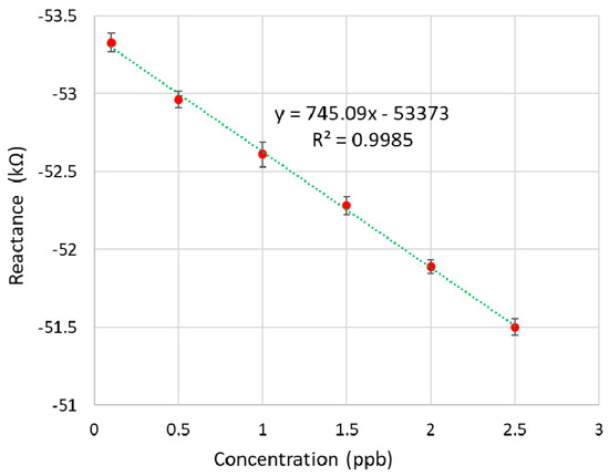 The mean value of reactance and standard deviation for different concentrations of CTx-I.