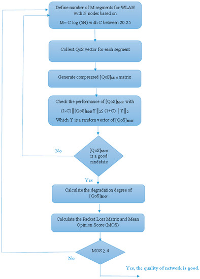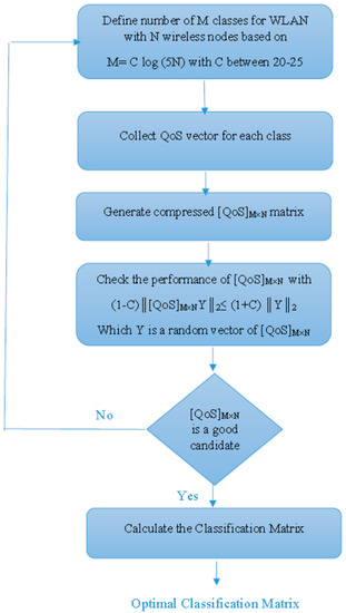 (2) Collect QoS vector for each class; (3) Generate compressed [QoS]M×N matrix; (4) Check the performance of the compressed [QoS]M×N matrix based on the following condition [33]: