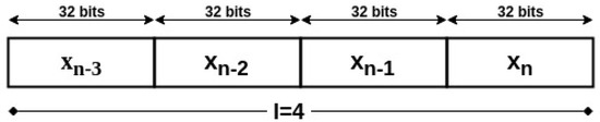 Our proposed key generation scheme will only depend on the seed of the generator. This seed, which we will refer to as , represents the end of the iterations cycle of the Henon system. For security measures, the patient’s medical device will synchronize the initial conditions of the Henon equations using wired links with the trusted device. In addition, they can be pre-implemented in the system’s devices before use. Therefore, the attacker will not have the second needed input to generate the desired key, even if he/she succeeded to eavesdrop the seed. The generation of the key on the device will be simple, however, on the attacker’s device, it is going to be a complicated process. The main device will generate the seed on its side, then it will communicate it to the second end of the system. Afterwards, the encryption key will be generated independently on both sides from the communicated to be as shown in Figure 4. In order to reduce the computation cost of the algorithm, the data values will not be represented on the same number of bits as the key length, but on a fixed point representation of 2Q30 or 2Q14, i.e., the data has 2 bits integer and 30 bits fraction, or 2 bits integer and 14 bits fraction, respectively. This utilization of low precision among the variables of the Henon system will avoid the extra use of memory and computational resources. Hence the low resources of the device would not become a problem for the algorithm execution. The encryption key with length m will then be the concatenation of the last binary l values generated by the Henon equation, such that or .