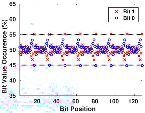 This test ensures the randomness of the whole sequence by verifying if the appearance proportions of 0’s and 1’s are approximately the same. Thus, there is not a value that is more probable to appear than the other.