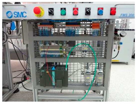The PLC used for the automation of each station is located on the electrical panel mounted on a standardized Deutsches Institut für Normung (DIN) rail. The PLC incorporates 16 digital I/O, both working and load memory, PROFIBUS and MPI interface, and integrated counters and timers. Each slave PLC executes control tasks over the corresponding station and exchanges data with the others via PROFIBUS. In addition, it must be noted that each PLC acts as an interface to link the S&A with the fieldbus. In the case of station 1, S&A are connected directly to the master PLC.