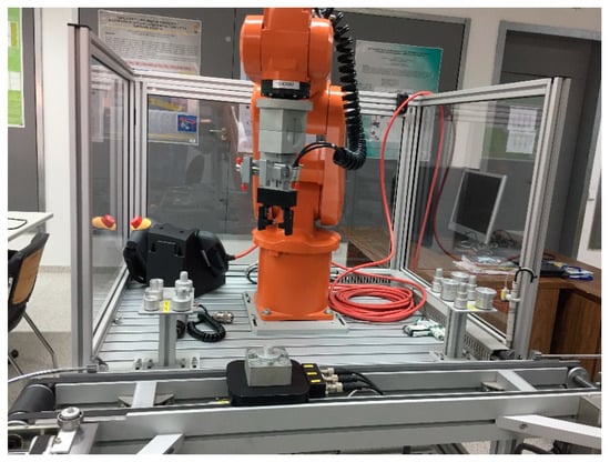 Figure 3. Station FMS-201: Body supply. - Station 7 (FMS-207): Robotized screwing. In this station, a widely diffused technology is used, such as robotics. This station consists of an ABB multipurpose industrial robot that weighs only 25 kg and can support a payload of 3 kg with a range of 580 mm and six degrees of freedom (see Figure 4). It should be noted that this station has two programing tasks: