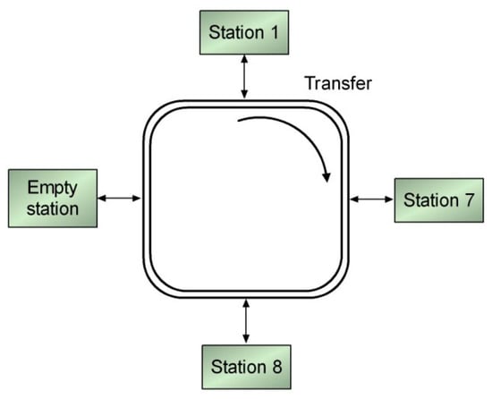 Finally, for a better illustration of the FMS, Figure 7 depicts its layout through a block diagram, whereas Figure 8 shows a snapshot of the current four stations in the laboratory.