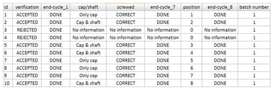 Now, through scripts, the developer can create new registers for each new piece, update the information for the current task of the cycle, or allow the user to search a specific register by entering the identifier in the input field. Figure 20 shows the result obtained for the database using the aforementioned scripts. In this way, the information of the FMS operation is successfully stored and can also be accessed by other software applications like those devoted to ERP, MES, CAM, or web-based remote visualization. Figure 21 depicts, in a simplified way, this availability of database-supported information.
