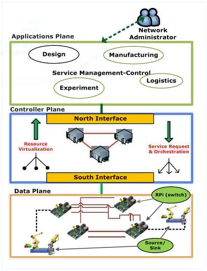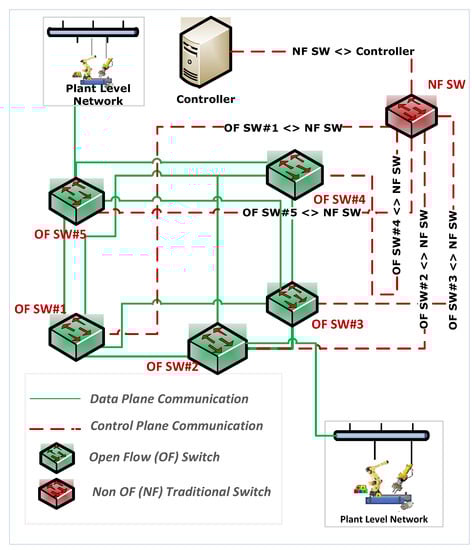 - Ahmed, K.; Blech, J.O.; Gregory, M.A.; Schmidt, H. Software Defined Networking for Communication and Control of Cyber-Physical Systems. In Proceedings of the 2015 IEEE 21st International Conference on Parallel and Distributed Systems (ICPADS), Melbourne, VIC, Australia, 14–17 December 2015; pp. 803–808. [Google Scholar]