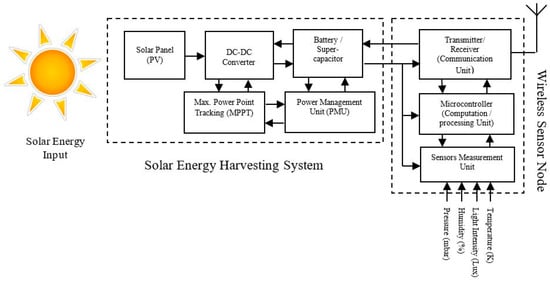 Block diagram of Solar Energy Harvesting Wireless Sensor Network Node (SEH-WSN).