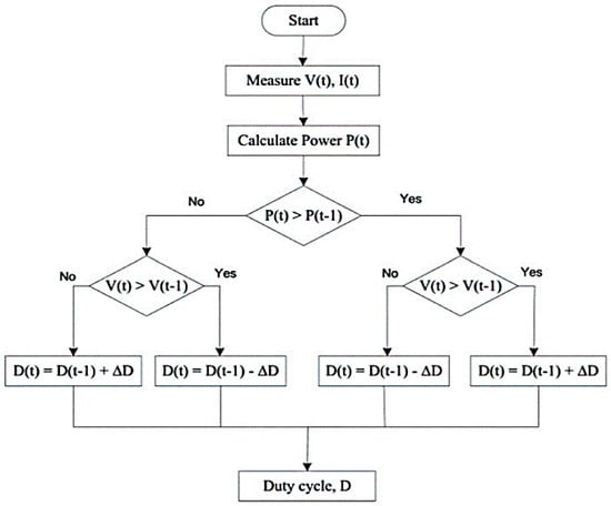 Flowchart of Perturb and Observation (P&O) Algorithm for MPPT.