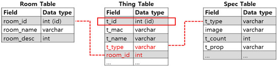 | 4: | query = “select t_id, t_type, t_prop from thing_table natural join spec_table where room_id = ROOM_ID” |