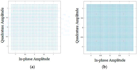 Signal constellation at transmitter side for (a) 1024-QAM and (b) 4096-QAM [26].