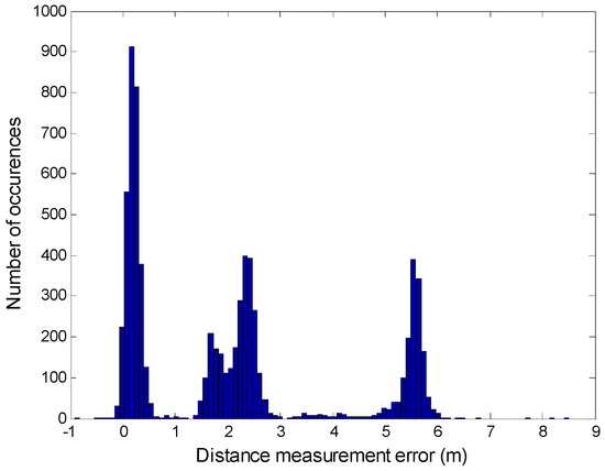 Example of an error distribution of real distance measurements realized in an indoor environment [21].