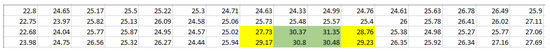 The data collected by Arduino are transmitted to a PC for finding the number of people. For a single reading, the thermal sensor returns 64 (4 × 16) values in °C. The temperature, when no one is present, is between 22 and 25 °C. The temperature varies between 27 and 32 °C when a human is present.