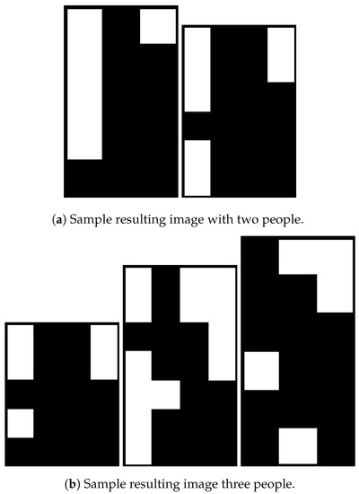 The problem with this approach is that, if a person slightly moves, the temperature values in other pixels increase. If the window size and threshold are not chosen accordingly, it might result in very inaccurate results, as in Table 4, where the window size is 1 × 4. The experiment was done when two people were sitting on chairs. It can be observed that the average accuracy was much smaller compared to the best case. In this case, the window size value should be recalculated to account for different number of people and activities, making the algorithm less suitable for dynamic environments.