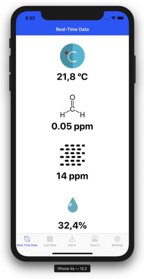 Formaldehyde is a high-volume chemical, which is used for disinfection purposes and as a preservative. Formaldehyde is genotoxic, causing DNA adduct formation, and it has a clastogenic effect exposure relationship [48]. Therefore, it is extremely important to provide real-time formaldehyde supervision to prevent people exposure. The selection of the PMS5003ST sensor module takes into account the cost of the system, but also the accuracy of the monitored data. Furthermore, it is important to mention that the main objective of the research was to test the IoT architecture of the proposed system.