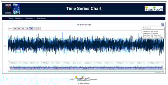 In Figure 5, the panel for navigation into the time series of pH measures is shown. The user can move the bar under the chart to select particular time intervals. When the intervals are selected, MEMO-HQ generates the new chart with the values taken from the pyramidal structure of the database.