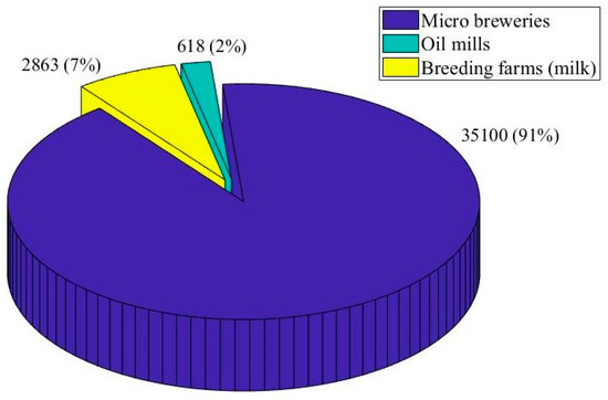 By limiting the market to the Italian territory and only to micro-brewery plants, micro/very small plants for the production of olive oil and cow’s milk that do not have their own SCADA. A minimum number of approximately 38,000 potentials is estimated (Figure 8), of which approximately 3700 are predicted to be interested in testing the prototype version of MEMO-HQ.