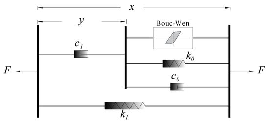More details are available in the literature regarding the history of the development of the analytical model of MR dampers. According to Spencer et al. [], the nonlinear behavior of an MR damper can be described as follows