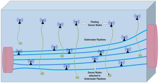 Mohamed et al. propose a sensor network model for monitoring underwater pipelines which can be used for monitoring underwater marine cables, gas and oil pipelines []. Authors also compare different architectures for pipeline monitoring. This work also addresses the challenges like reliability, power consumption and also physical security of the network. Henry et al. propose a UWSN architecture for pipeline vandalization and oil spillage monitoring and detection []. This work also explored the viability, challenges and feature of these applications for implementing in Nigeria. The Security and deployment challenges of the wireless sensor nodes in the Niger-Delta oil and gas sector is addressed in [].