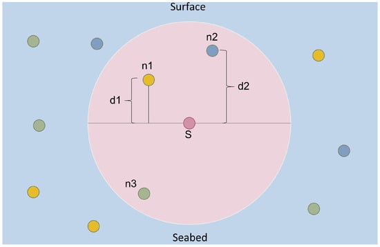 Most of the applications of UWSN require time and location of the sensed data. So, localization is very important to perceive the network architecture and also to collect the data accurately []. Localization underwater is challenging because radio frequency is highly attenuated in underwater conditions, thus GPS technology is not feasible there. In most cases, the exact positioning of all the nodes is not necessary. Rather, the exact locations of a few nodes are enough and these are called the reference nodes. Such localization schemes are broadly of two types—(i) Range based scheme, and (ii) Range free scheme.