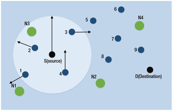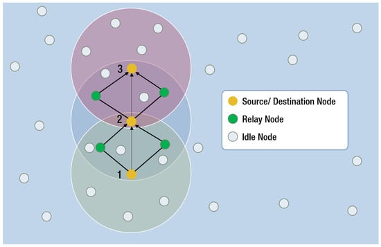With an aspect of improving the energy consumption, Packet Delivery Rate (PDR), transmitting path and latency, Bharathy and Chandrasekar proposed Virtual Tunneling Protocol (VTP) for UWSN []. There are three main steps in VTP: (i) choice of nodes for relay, (ii) tunneling to the destination from source, and (iii) packet transmission through tunnel.