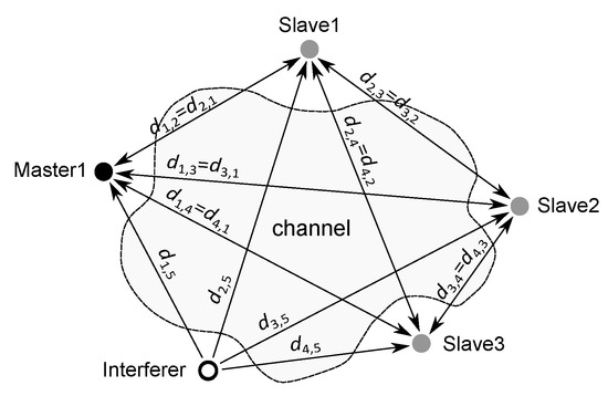 At (), which are the starting points of the first subintervals, M1 begins to send the data packets to S1 but receives no responses; therefore, M1 terminates the connection with S1 at ms, where 4.914 ms is the moment of receiving the last data packet from S1, while ms, as indicated in Figure 3, whereas S1 terminates the connection with M1 at ms. After termination, M1 uses the first subintervals for listening for new advertisements, and receives the advertising packet from S4 at 110.129 ms, which is followed by creating and establishing the connection with the slave at 110.631 ms and 117.134 ms, respectively.