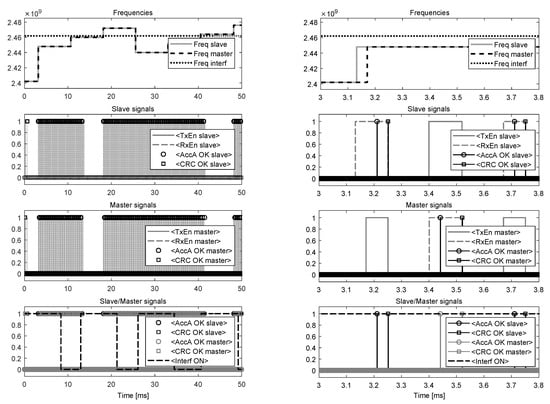 At , which are the starting points of the second subintervals, M1 begins to send the data packets to S3, which are received by the slave at ms, while the responding packets from S3 are received by M1 at ms.