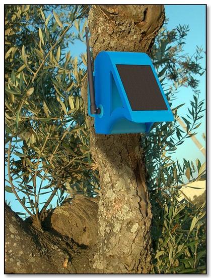 Landa et al. [31] and Trapero-Casas et al. [32] state that there are more than one hundred olive pathogens, although only a few of them cause serious economic losses on olive groves. Verticillium wilt includes high rates of tree mortality and reductions in fruit yield [33]. High infestation levels of olive moth and fly (P. oleae) can lead to high economic losses [34]. The olive fly causes severe economic losses. The bacterium X. fastidiosa is a plant pathogen transmitted by insects that feed on the xylem fluid of plants. Fernandez et al. [35] estimate that X. fastidiosa full spread could ultimately cost the EU over €5.5 billion/year due to production losses, affecting over 70% of the EU’s production value of olive trees. Thus, it is very important to apply control measures, not only to contribute to reduce the excessive use of pesticides, but to evaluate the tree health and to spot parameters variation that can indicate diseases and pests surge. Among the research work developed by Ferrer et al. [15], an inventory with the main pests and diseases affecting the olive tree was developed, including their geographical distribution and economic impact, as well as, how expected climatic changes are likely to impact the distribution and occurrence of such pests and diseases and their impact on olive growing. Research studies focusing on the analysis of the effects of climate change on the olive agricultural production system, including the development of pest and diseases, is limited. Some results were obtained by Graniti et al. [36] and Ponti et al. [37]. They concluded that is very difficult to predict how diseases and pests in an olive tree evolve due to changes in temperature, humidity (precipitation) and CO2 concentration, but some indications are: (1) extension of the survival rate of pathogens and pests outside their usual ranges; (2) change of biological cycles of pests and diseases; and (3) unpredictable increase of their development. Thus, as stated before, Information Technology (IT) tools such as wireless sensors are now at a stage of technological maturity that can be used to constantly monitor climatic and vegetation data that will feed decision support systems and ultimately be used by farmers as a precision plant protection technique.