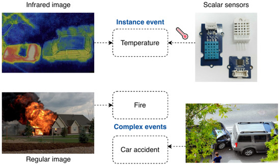 - Instance Events: They can be detected by both scalar and visual sensors. The defining characteristic of an instance event is that it is directly detected only employing a single numerical threshold. Each scalar sensor can detect one or more instance events and the same is true for visual sensors. Infrared/thermal images are examples of visual data that can be processed to identify instance events;