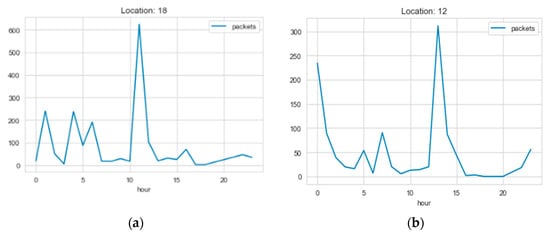 Figure 1. Average weekly load on different base stations: (a) location 18; (b) location 12.