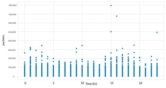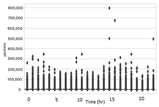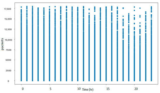 Finally, for all the NaN values in the dataset that originated from the missing values or the outliers, we replaced this value with the value of the record at the previous time instance. As illustrated in the box plot in Figure 5 and the scatter plot in Figure 6, the number of outliers was significantly reduced.