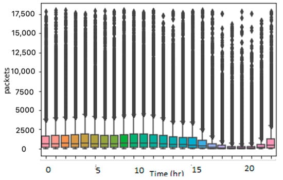 Outliers are the data points distinctly different from the rest of the data points in the dataset. Outliers may exist in the dataset because of noise or other random measurement errors that may occur during the recording or processing of the data. The presence of these outliers in the data causes inconsistencies that can decrease the performance of the forecasting models. Hence, it is important to identify and remove the outliers before applying other steps. A box plot and scatter plot were used for the visualization of the outliers. The distribution of data before removing the outliers is illustrated in Figure 3 and Figure 4 using the box plot and scatter plot, respectively. The figures demonstrate that a significant number of outliers were found in the dataset.