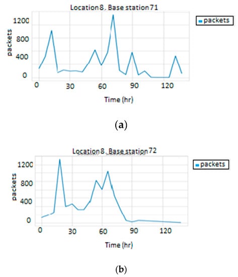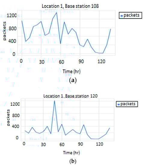 To test the performance of this technique, the behavior of base stations belonging to the same location were examined. As illustrated in Figure 8 and Figure 9, base stations at the same location have different traffic loads. The behavior similarity of a group of base stations was clearly not dependent on their location. Therefore, this technique will not be appropriate, and another approach is required to perform the clustering process.