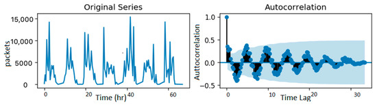 The stationarity of a time series is necessary to perform statistical model forecasting. Hence, transformation methods were applied to the data to make it stationary. One characteristic of stationary data is that the values in their autocorrelation function (ACF) plot converge toward zero [25] as the time lag increases. As shown in the ACF plots of some sample base stations in the dataset presented in Figure 11, the data are stationary and do not require further differencing.