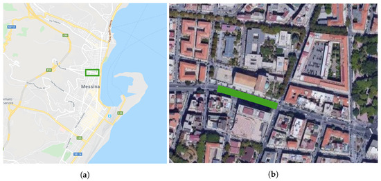(a) Plan of the City of Messina (left); (b) detail of the monitored zone (right).