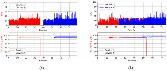 Resource comparison for two different services running on the general-purpose device. (a) two services running with a minimum downtime; (b) two services running simultaneously.