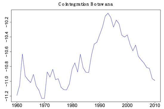 We choose to use in our analysis that for the CRDW. For Botswana, this means that the countries that are to be retained are Algeria and Central African Republic (CAR)8. The Johansen estimation method gives as the first cointegrating variable (for 1960–2010):
