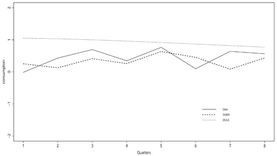 DSGE models aim to describe the behavior of the economy in an equilibrium steady-state stemming from optimal microeconomic decisions associated with several representative agents (households, firms, governments, central banks, etc.). These decisions are based on the intertemporal optimizing the behavior of representative agents, with the first-order conditions of the optimization problem linearized around a constant steady-state using a first-order Taylor approximation; 2nd order terms raise problems beyond the scope of the present paper; see (DeJong and Dave 2011; Heer and Maussner 2009; Klein 2000). After linearization, the model is specified in terms of log difference, which is thought to be substantively more meaningful.