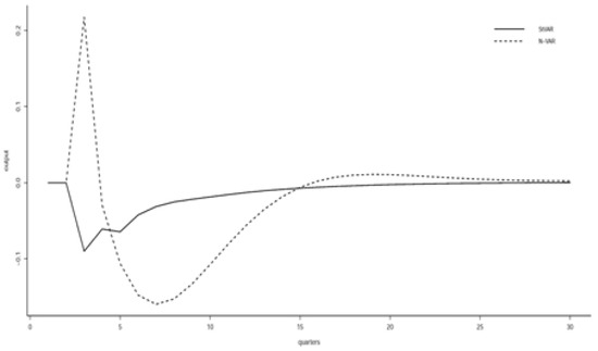 This can be easily extended to a heterogeneous St-VAR model where the mean is assumed to be: . This makes the autoregressive function a quadratic function of t: One important aspect of this model is that although heterogeneity is assumed only for the mean of the joint distribution, both the mean and the variance-covariance matrix of the conditional distribution change with t.