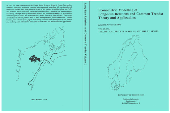 - Juselius, Katarina, ed. 1994. Econometric Modelling of Long-run Relations and Common Trends: Theory and Applications. Copenhagen: University of Copenhagen, Institute of Economics, vols. I–IV. [Google Scholar]