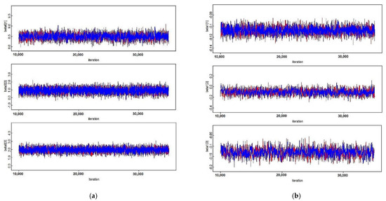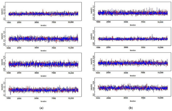 - Cowles, Mary Kathryn, and Bradley P. Carlin. 1996. Markov Chain Monte Carlo Convergence Diagnostics: A Comparative Review. Journal of the American Statistical Association 91: 883–904. [Google Scholar] [CrossRef]